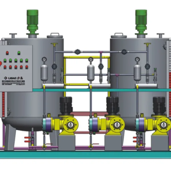该系统由热水罐、热水泵、温水罐、温水泵、储液罐、储液泵、净液罐、净液泵、钝化液储罐、钝化液循环泵、水洗回液泵和补液泵组成,功能主要是实现电解液体的存储、供应,是连接造液系统与电解生箔机的桥梁。